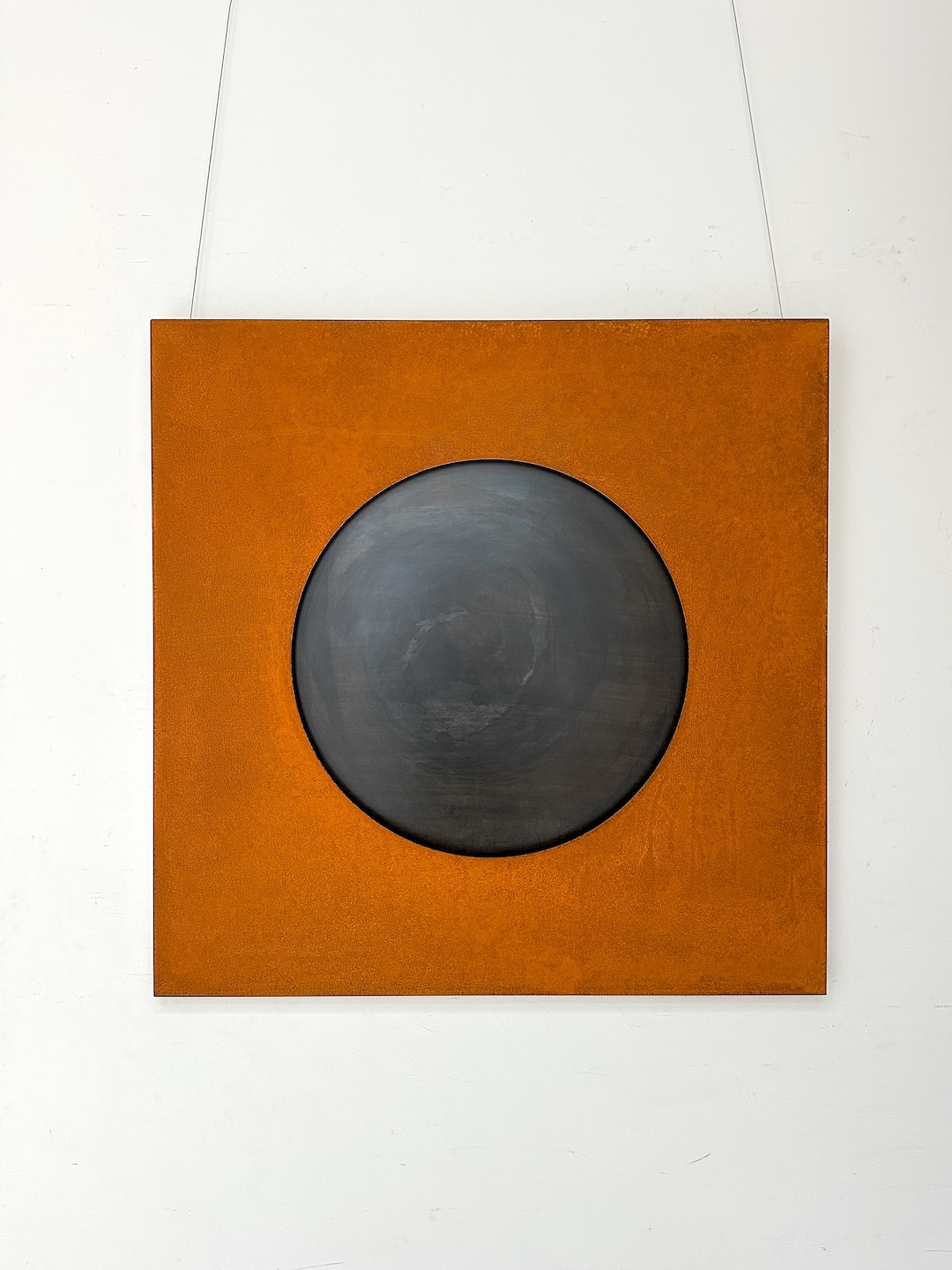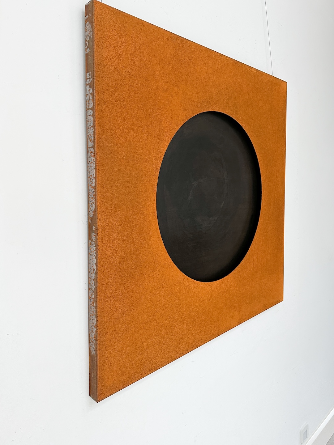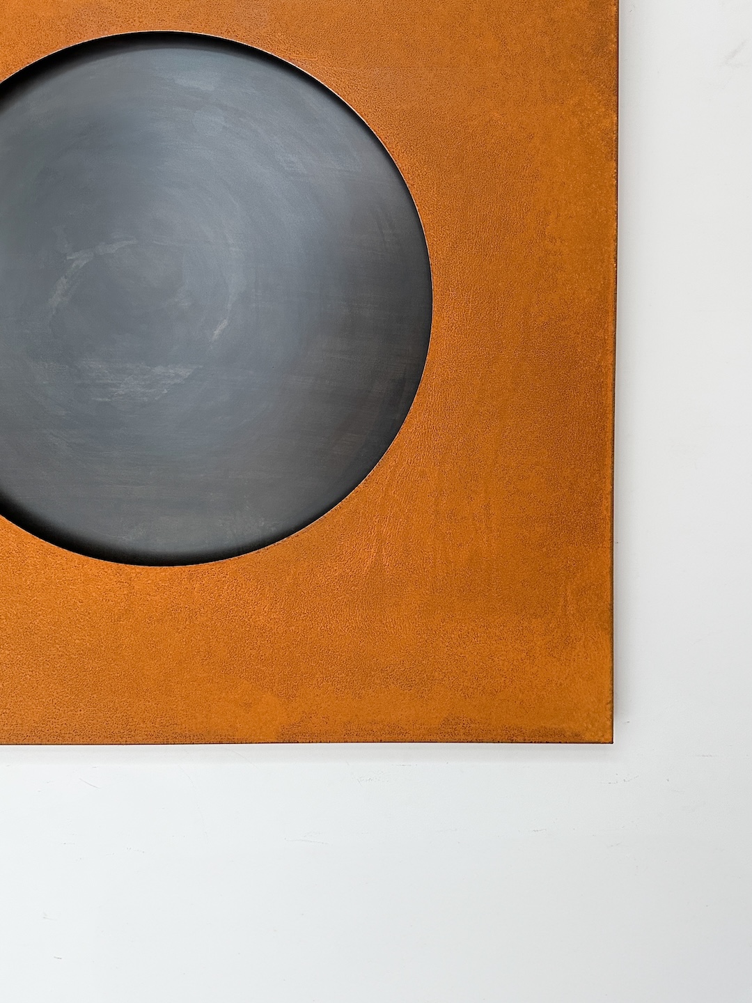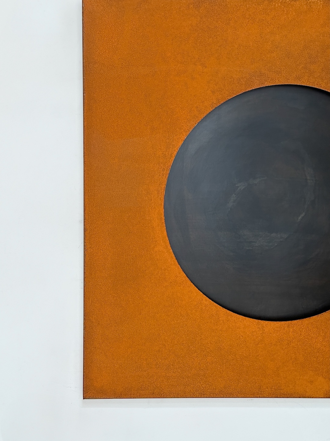 This artwork was created as complementary to the Sun from corten (as a negative). It consists of two parts: corten as a frame and black steel as a planet, the latter is mounted with a two-centimeter distance.
