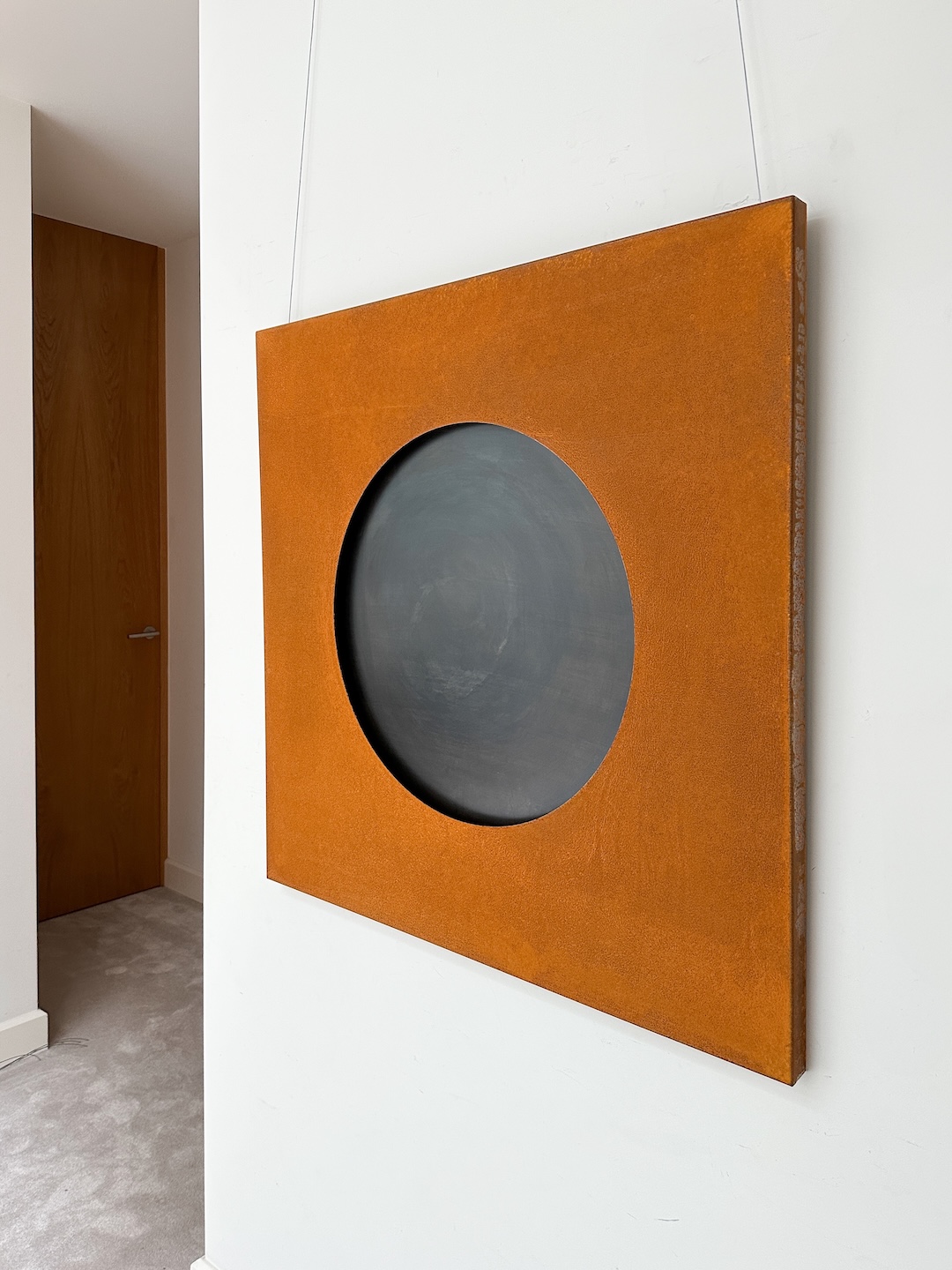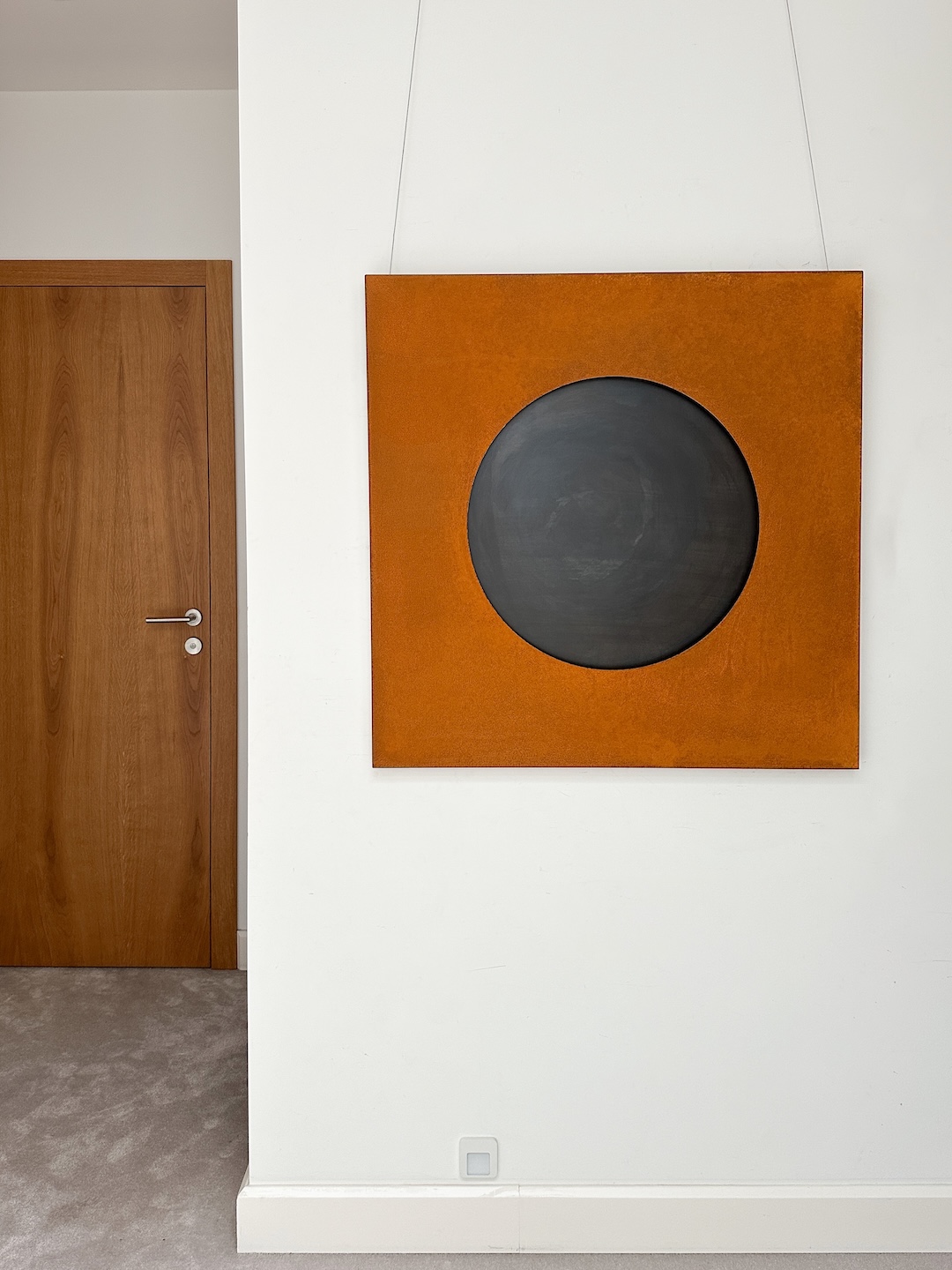 It will fit well in modern interiors – loft and minimalist, dominated by natural materials. A large surface of corten rusted into light ore will make the painting “warm” the interior. It will look very nice if it is illuminated by a spot from the ceiling or from a standing lamp.